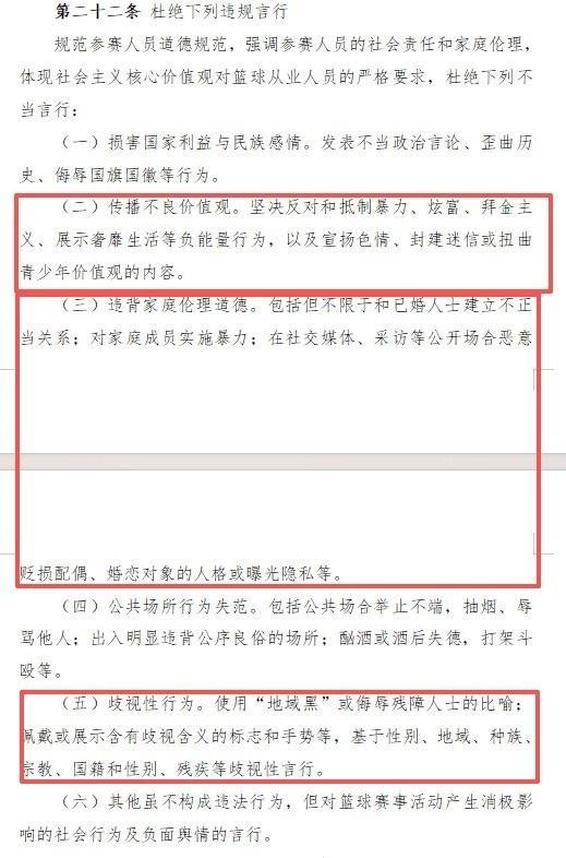(六)其他虽不构成违法行为,但对篮球赛事活动产生消极影响的社会行为及负面舆情的言行。