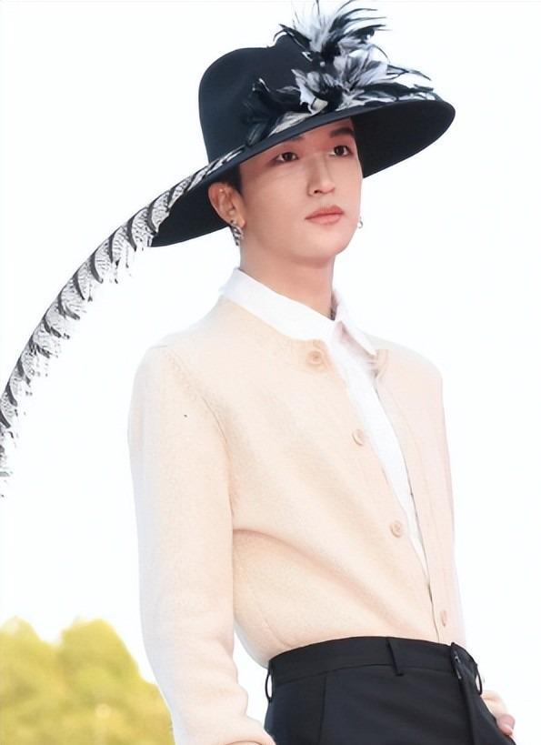 黄子弘凡上次在北京红毯,衣服穿的都挺正常的,但偏偏戴了一顶超大直径的帽子,还戴了耳环。