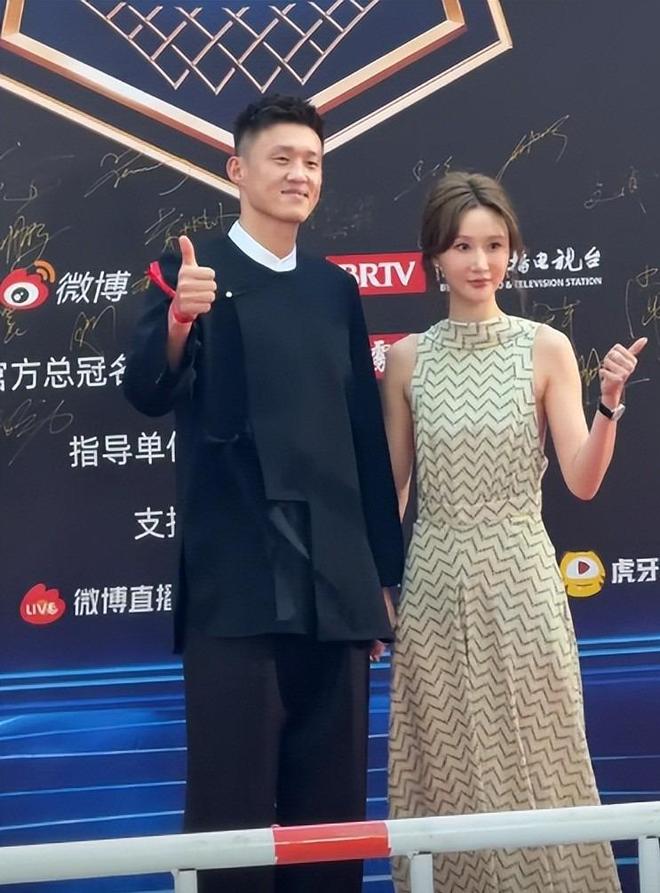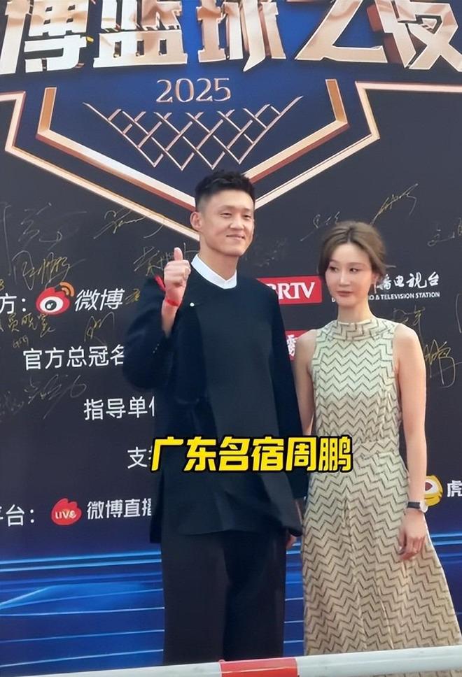 其他人两两组合搭档看起来也就平平无奇,但最耀眼的还是周鹏,直接把太太刘美带上了红毯活动。