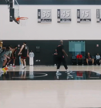 训练营里,詹姆斯四仰八叉的坐在椅子上