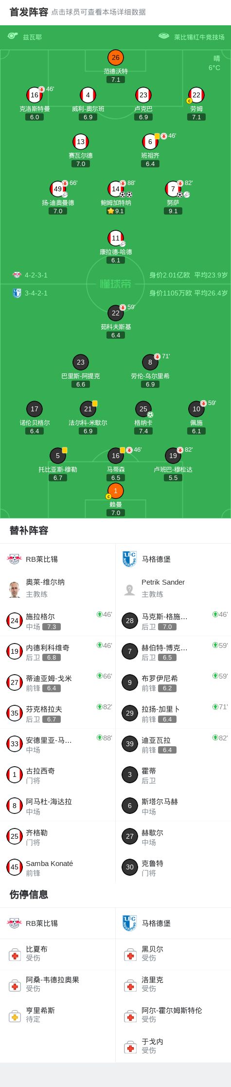 莱比锡3-1马格德堡晋级,鲍姆加特纳梅开二度,努萨传射建功
